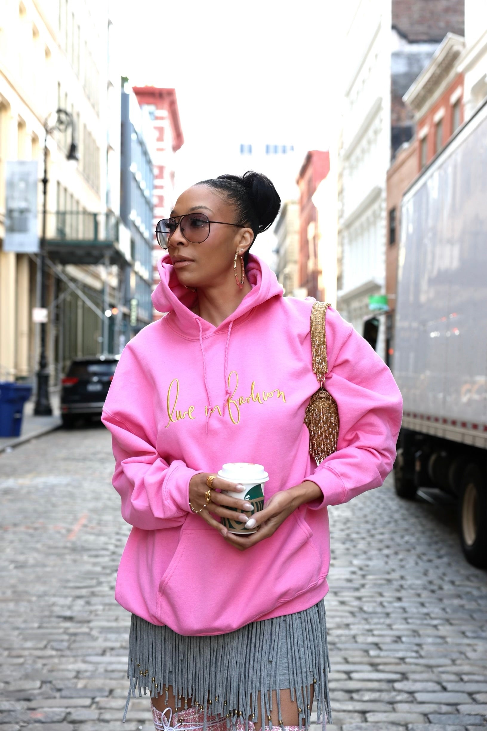 LIF EMBROIDERY HOODIE - AZALEA W/GOLD EMBROIDERY