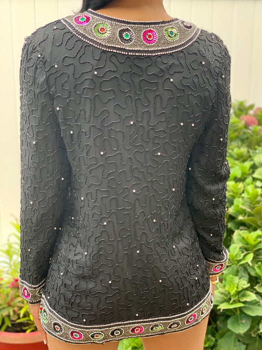 VINTAGE LICORICE SEQUIN BEADED JACKET
