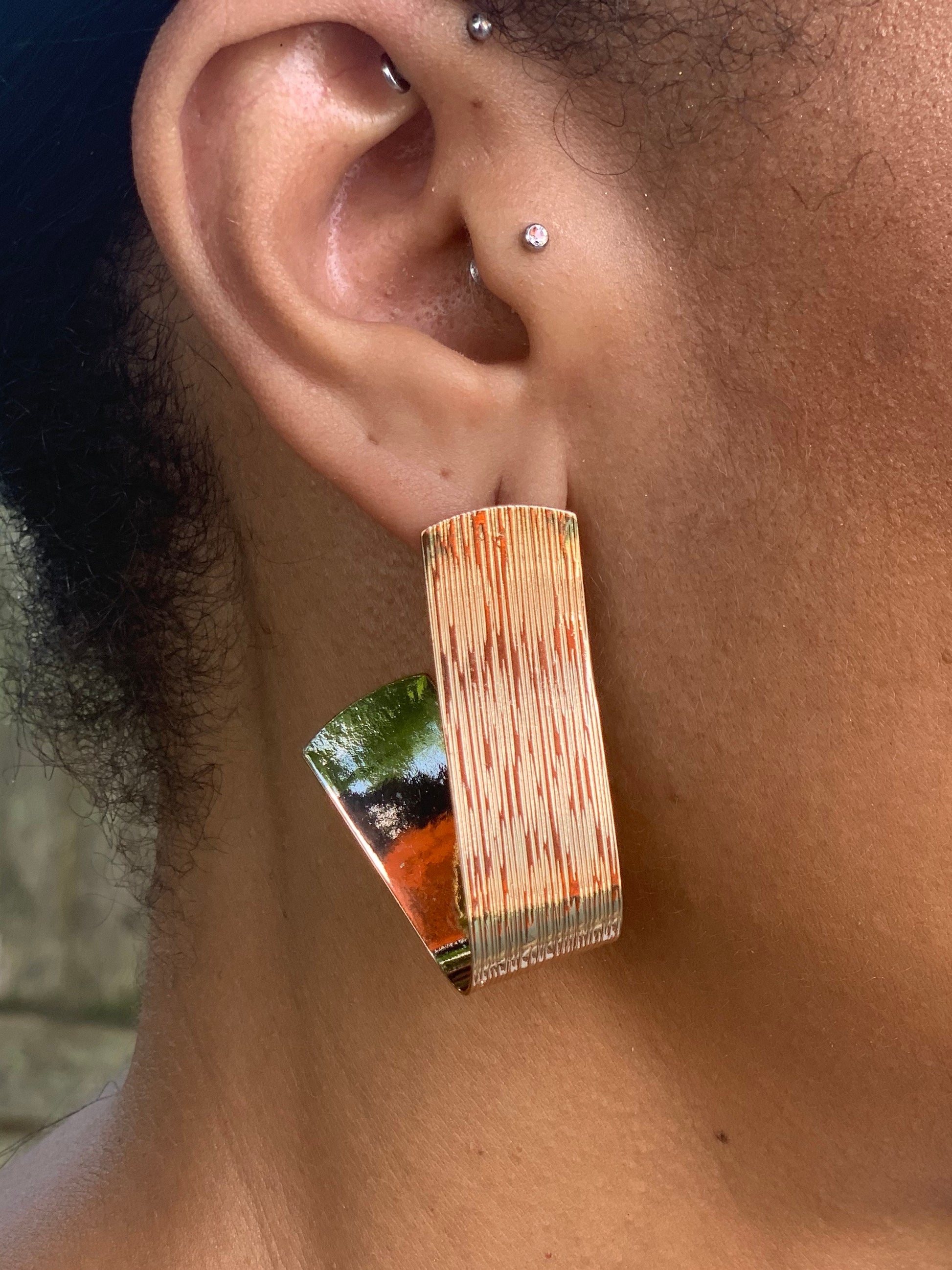 Extremely lightweight gold tone earrings.