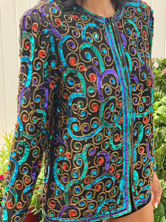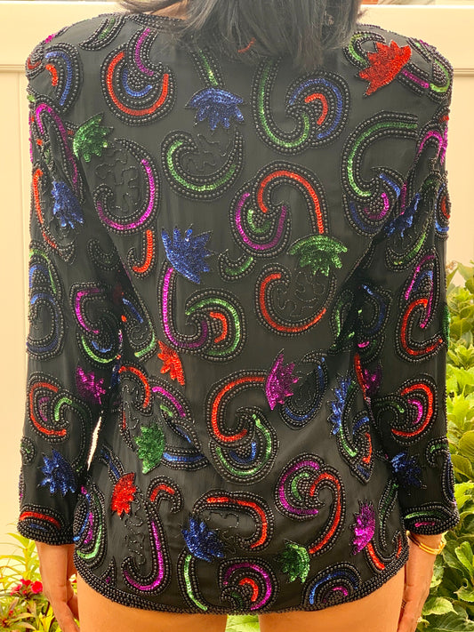 VINTAGE BLACK MULTI COLOR SEQUIN BEADED JACKET