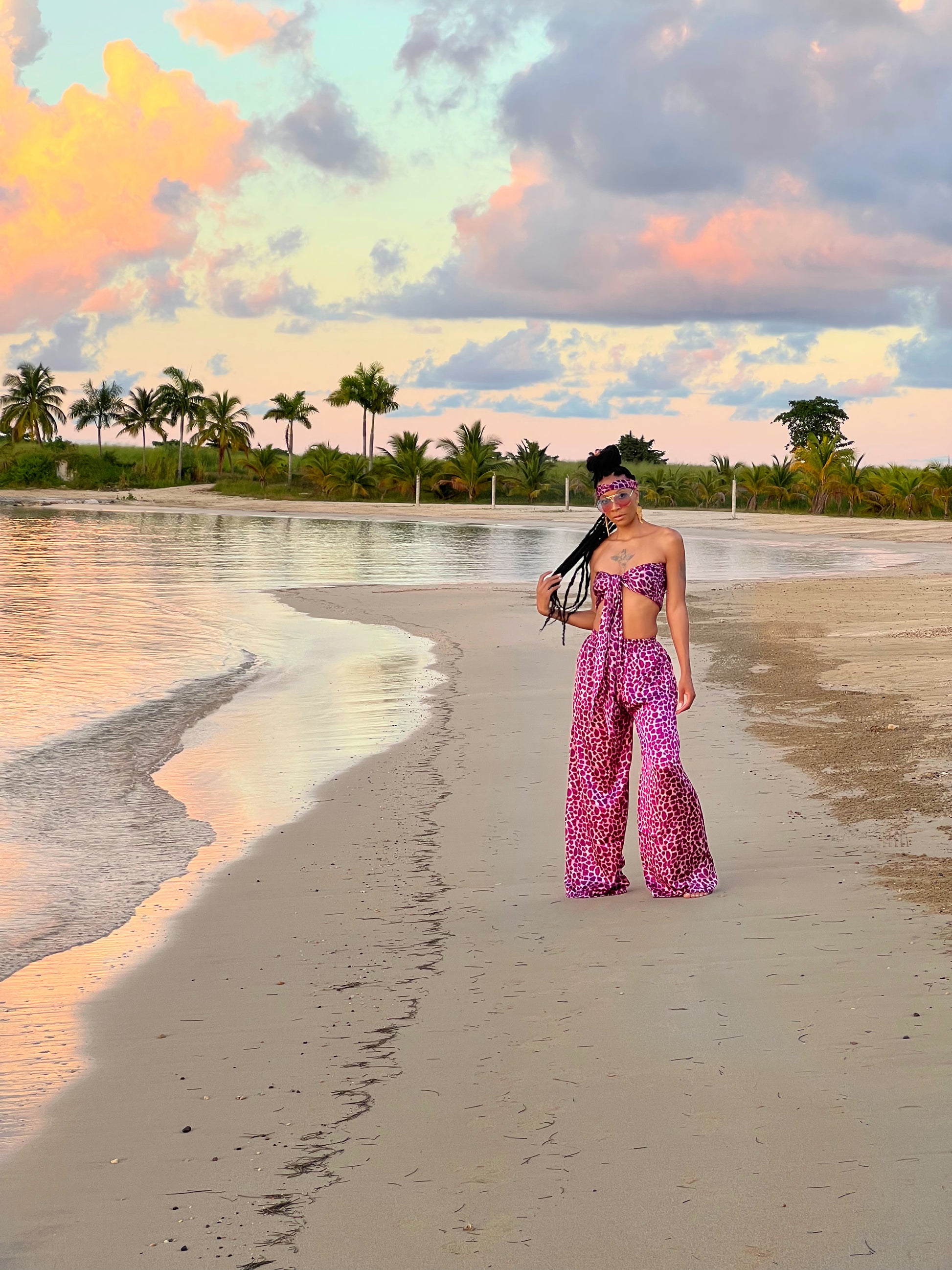 3pc set extendable waist pant, versatile wrap top & headband. The top can be worn several different ways. The pant is long, wide leg, loose and very comfortable especially in hot climates. This set comes with pockets. A matching headband is also included. The set is one size and fits most. The waist band is super elastic and fits sizes XS-S-M-L-XL-XXL. Set is very travel friendly. The satin fabric calls for no or very low ironing. If wet, place in the sun and will dry in about ten minutes depending on humidity.